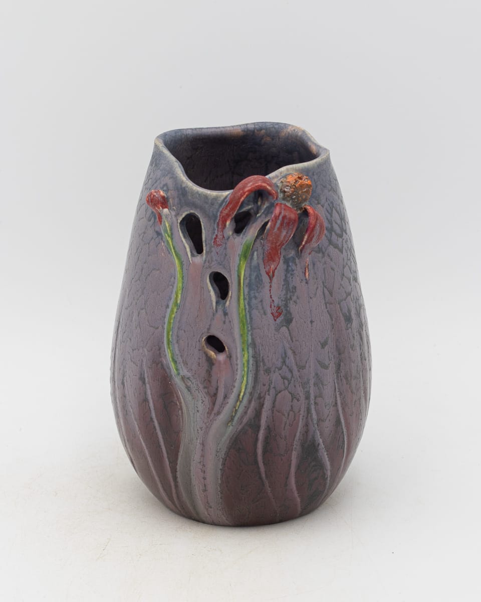 I met my husband 25 years ago when we both worked at Wisconsin Pottery in Columbus, Wisconsin. We both had an affinity for European Arts and Crafts era pottery. I love Amphora and he loves the Martin Brothers. Ed is a fantastic artist in his own right and has taught me so much. We collaborate on pottery at home. I throw lidded vessels and Ed sculpts these wonderful Wally Birds on them.