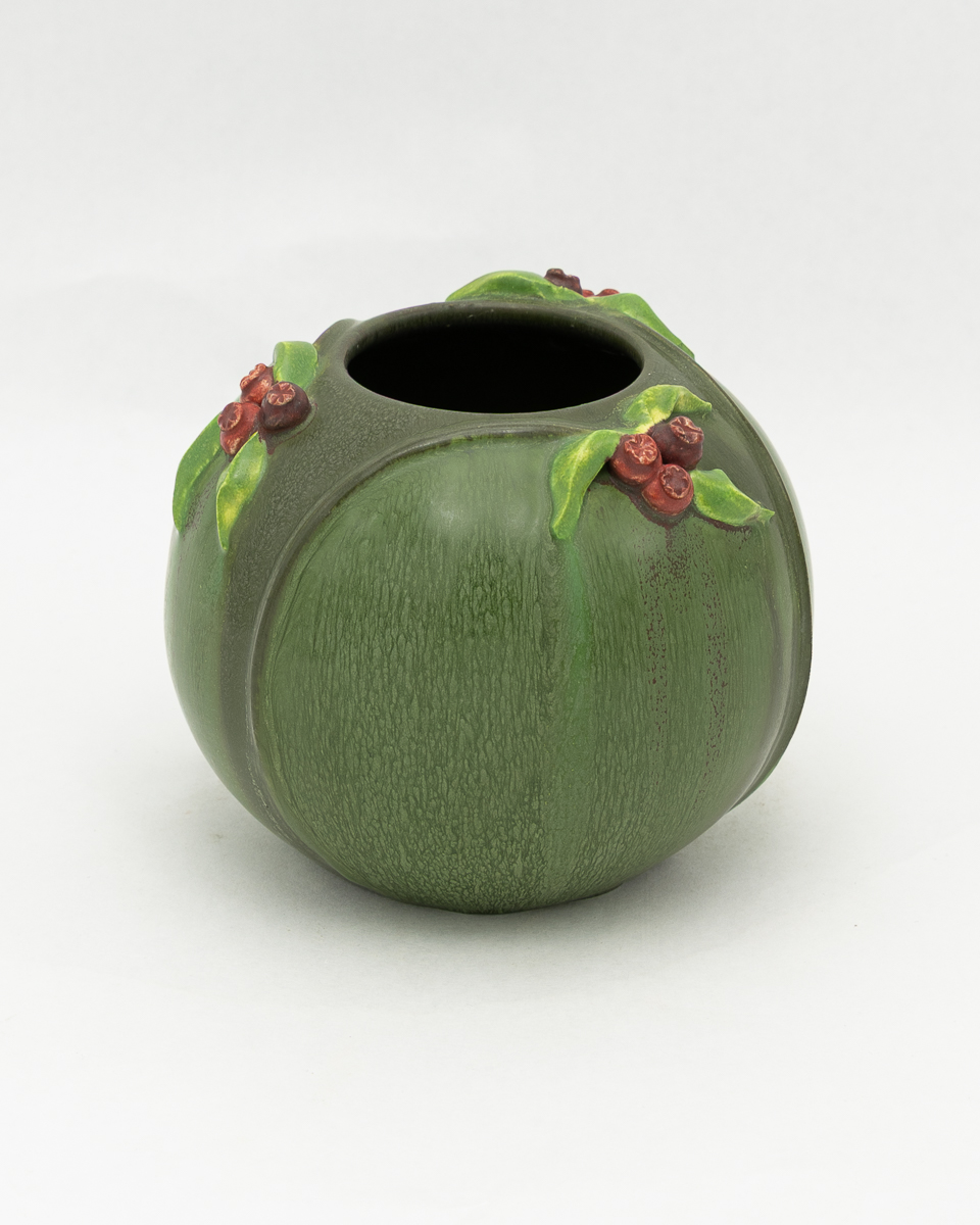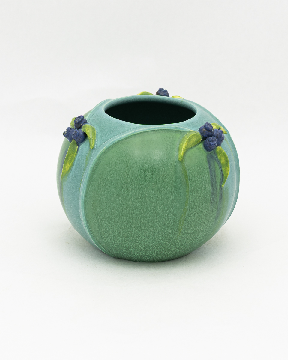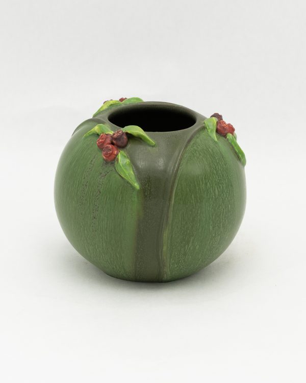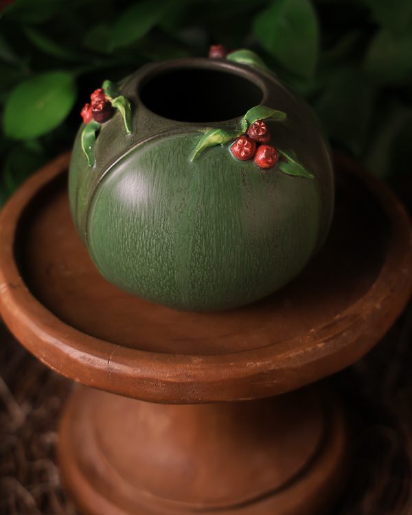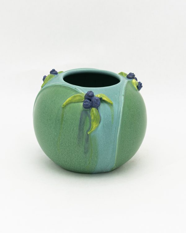 Clusters of hand-sculpted berries and delicate leaves gather at the shoulder of this sweet, rounded bowl. Graceful stems trace the contours of the form, connecting each little bunch in a natural rhythm. The Bramble Bowl is offered in two colorways that celebrate the berry in different seasons: ripe red berries nestled in deep Chestnut green, and plump blue berries against a soft Seaspray Blue.