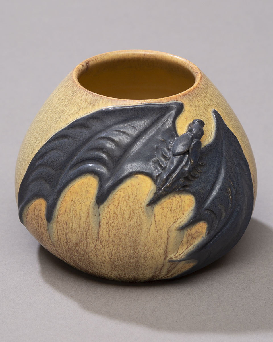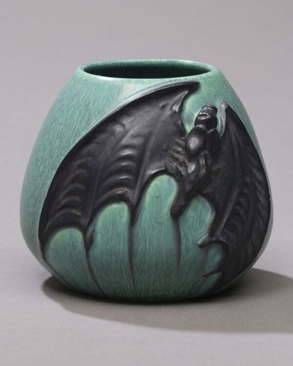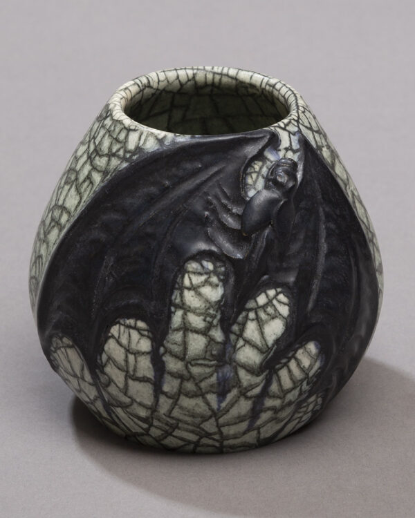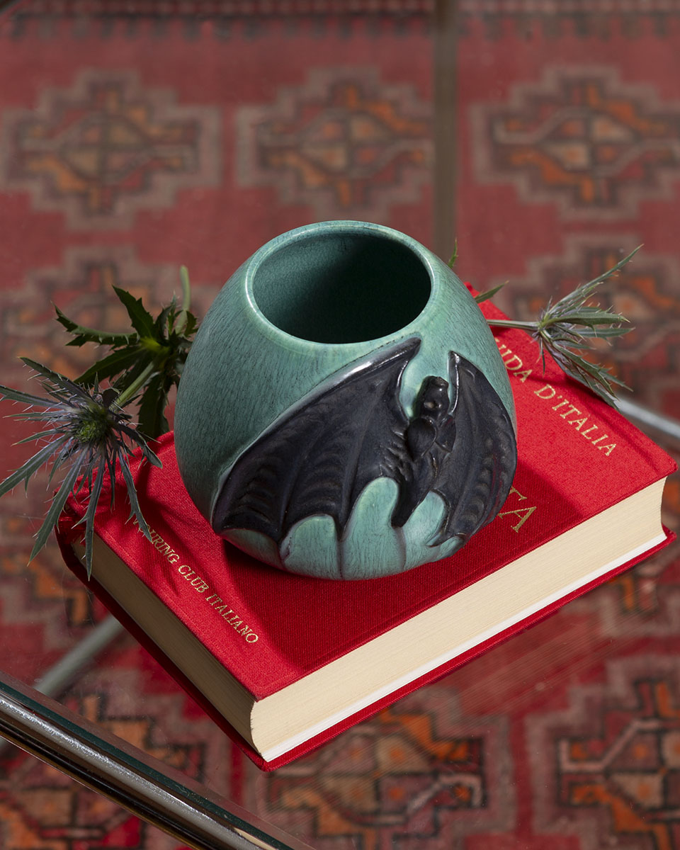 Warm weather and dusky skies beckon Wisconsin bats to begin their swooping ritual. These hypnotic creatures, descending from the trees and arching across the sky inspired this bat vase. Dramatic glazes and a delicately sculpted bat make this a moody, impactful piece.