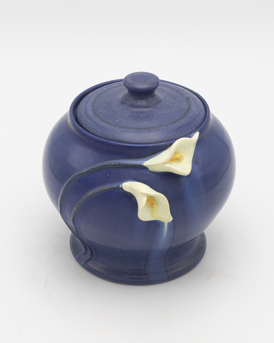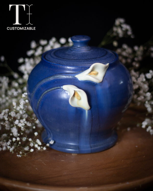 Calla Lily Small Lidded Urn in Indigo
