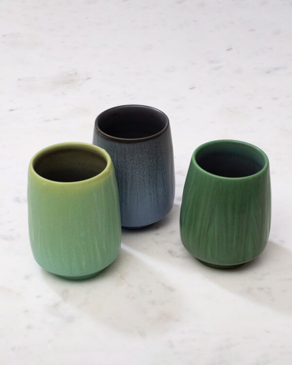 We designed our cups for hot or cold drinks with portability in mind, intending them to fit nicely in your hand. The pieces in our Evergreen line blend minimalist design with an understated hand-carved texture, a subtle nod to a woodsy evergreen forest.