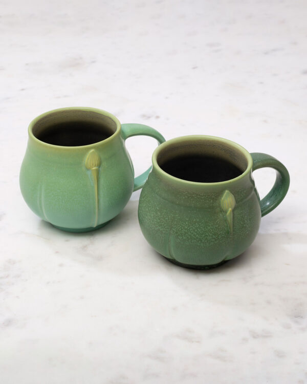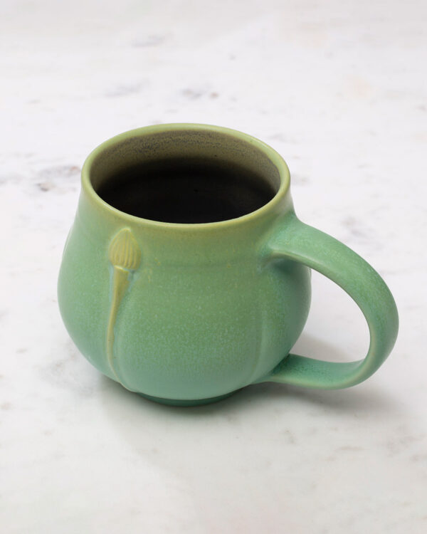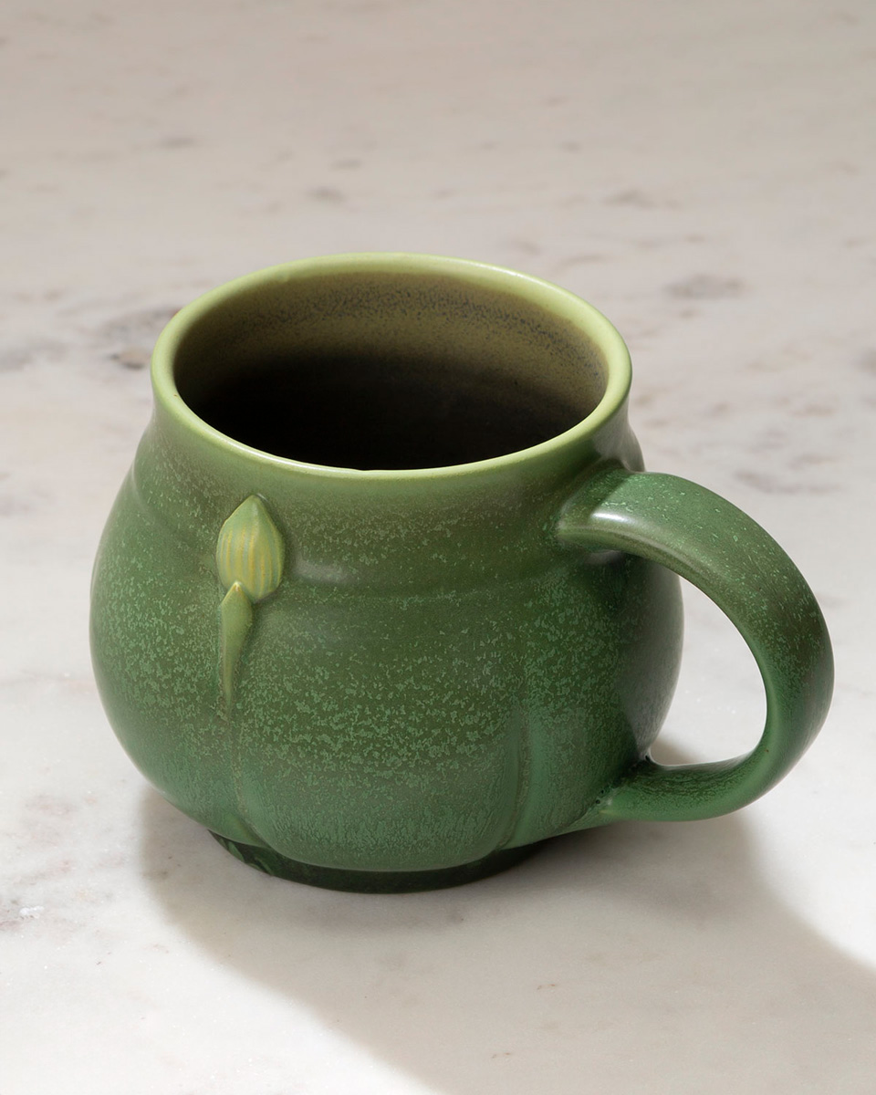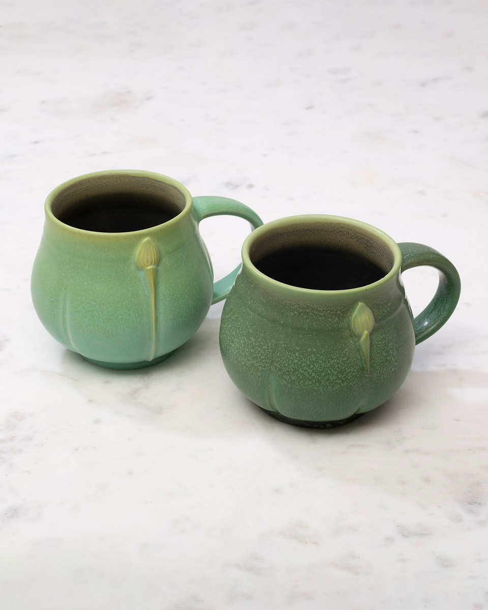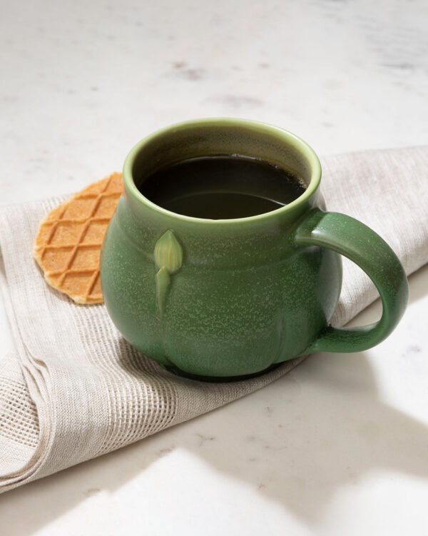Arts & Crafts style greets your morning coffee with this classically-inspired mug. Generous proportions, rounded edges, and two silky green glaze options (that feels amazing in your hand) will have you reaching for this mug first!