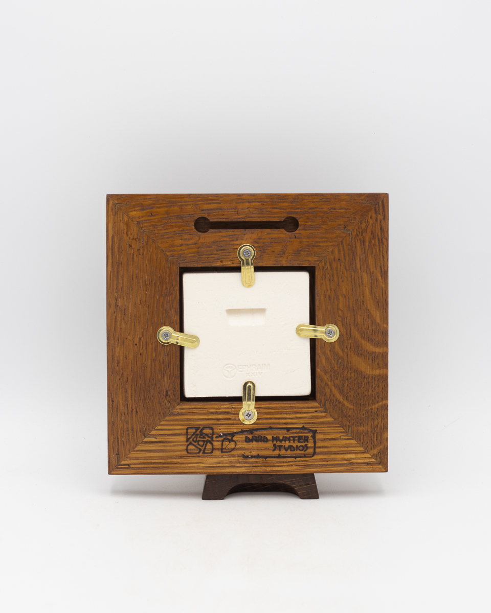 Dard Hunter Studios frames are handcrafted of quartersawn oak and finished using their four step Signature process producing a beautiful top-quality frame. Always look for the Dard Hunter Studios Rose Logo branded into the wood on the back of the frame, as your assurance that this is the 100% genuine article.