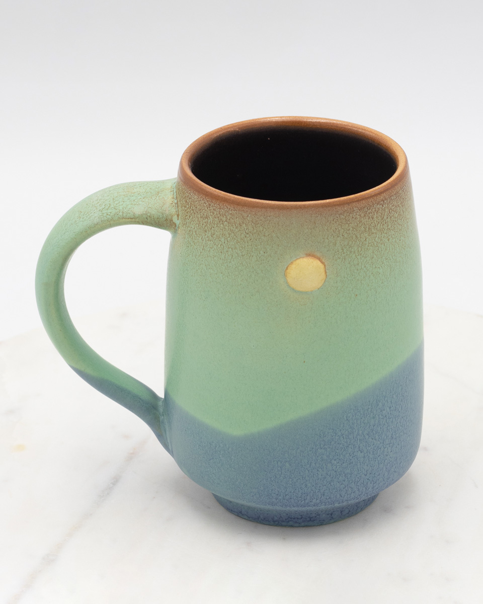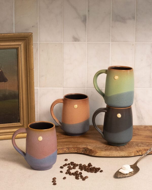 “Scape”—short for landscape—describes the abstract vista motif of this minimalist, wheel-thrown mug. Ponder the day’s possibilities with these perfect vessels for coffee, tea, or juice.