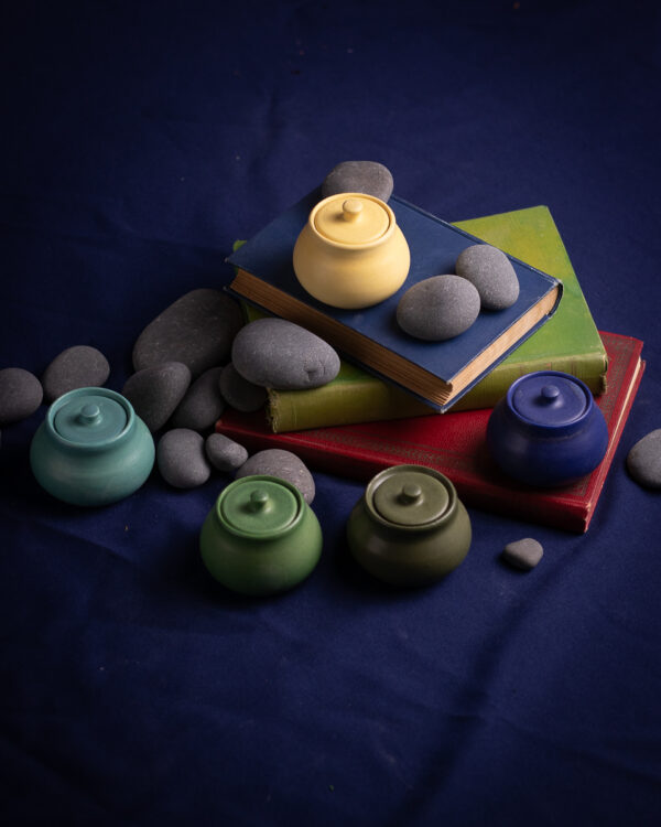 These miniature vessels offer intimate sanctuaries for remembrance, each one small enough to cradle in the palm yet spacious enough to hold what matters most. Available in an array of soft glazes—from tranquil green to warm earth tones—their gently rounded forms bring comfort through simplicity. Whether kept close on a bedside table, tucked into a special place, or shared among loved ones, these keepsakes transform memory into tangible presence. Each lidded vessel creates a personal refuge where love resides in handcrafted ceramic—proof that the most profound tributes often come in the smallest forms.