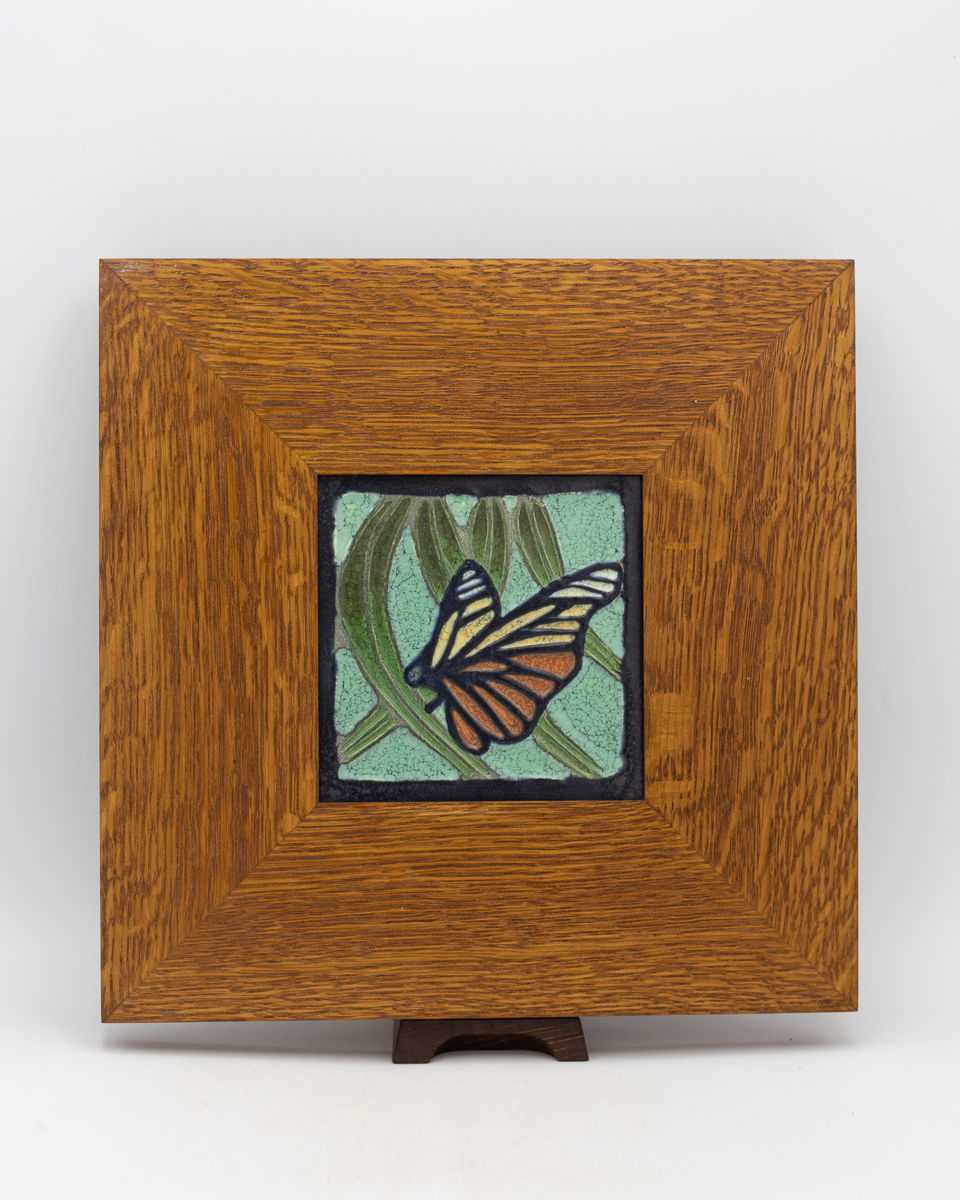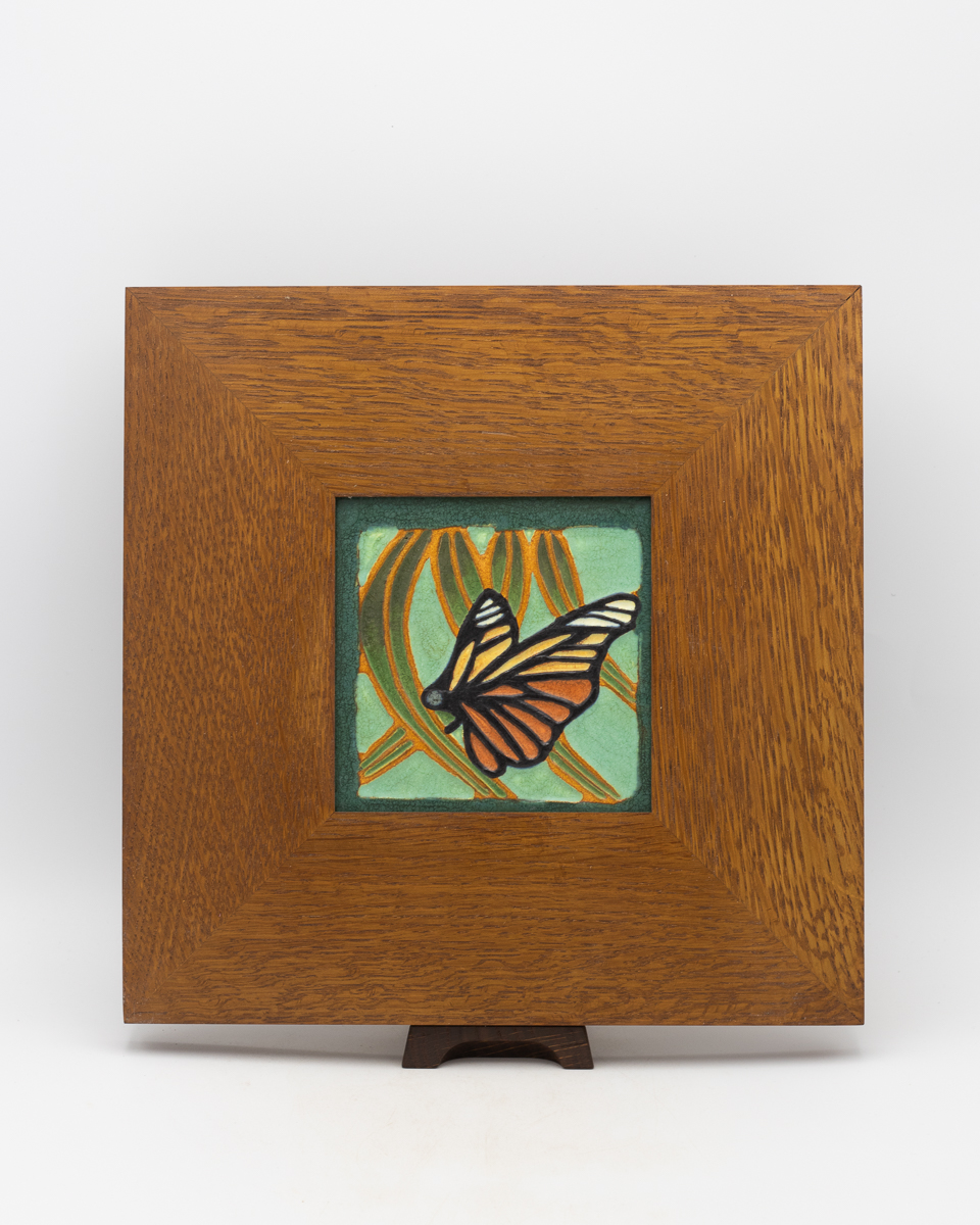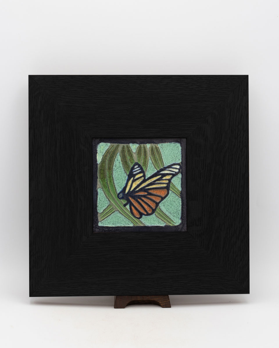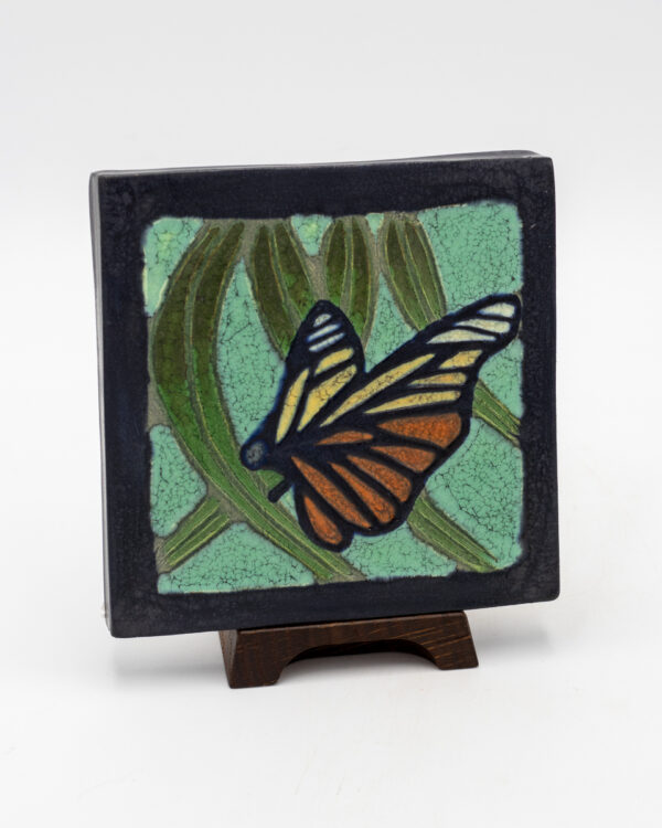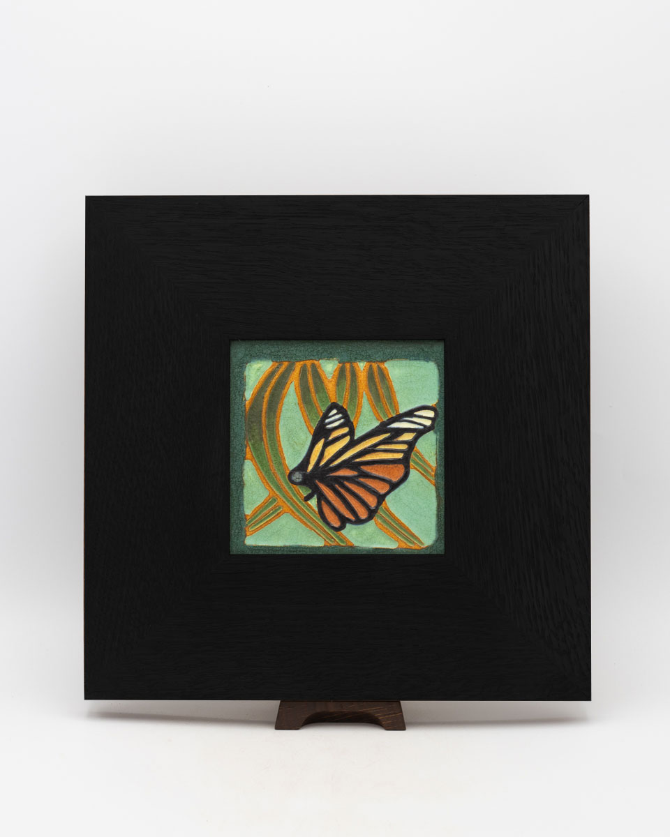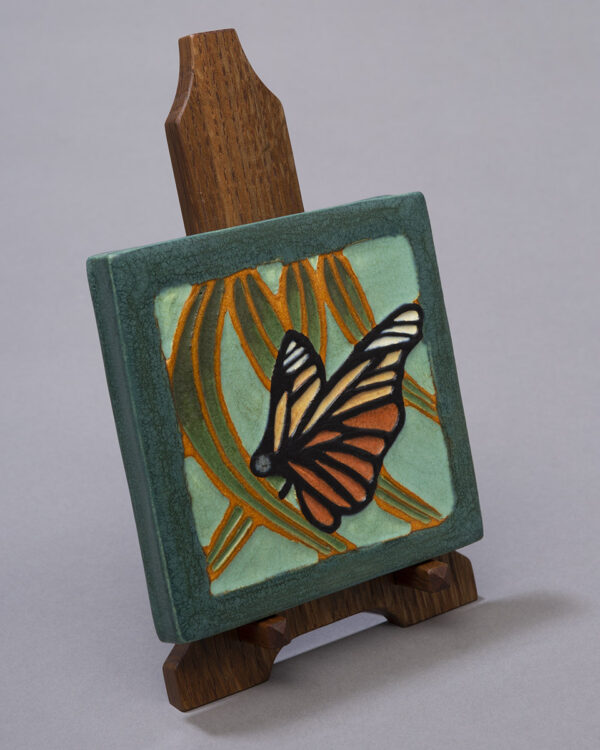 From October through February monarch butterflies overwinter in the eucalyptus trees of Central California. This tile depicts the majestic monarch, spreading its wings. To pair well with our existing California themed tiles–the Quail Tile and West Coast Wildflowers Tile–this monarch is sculpted in a familiar ‘stained glass’ style.
