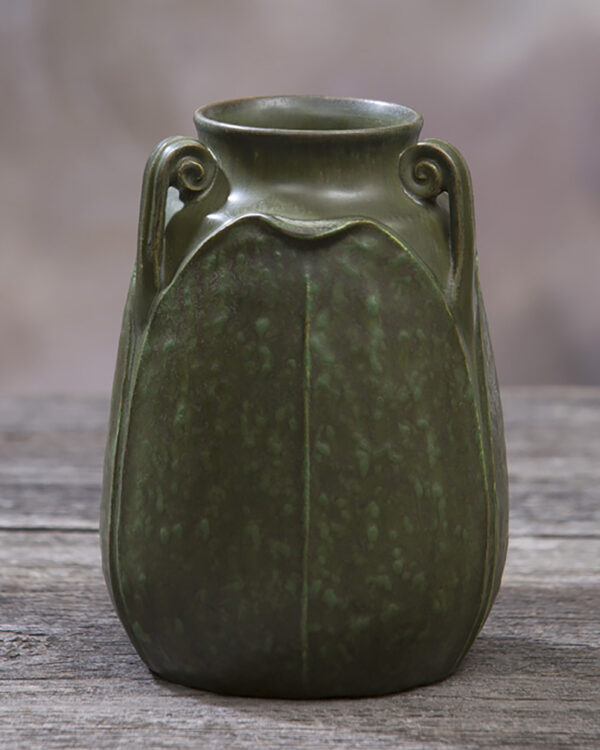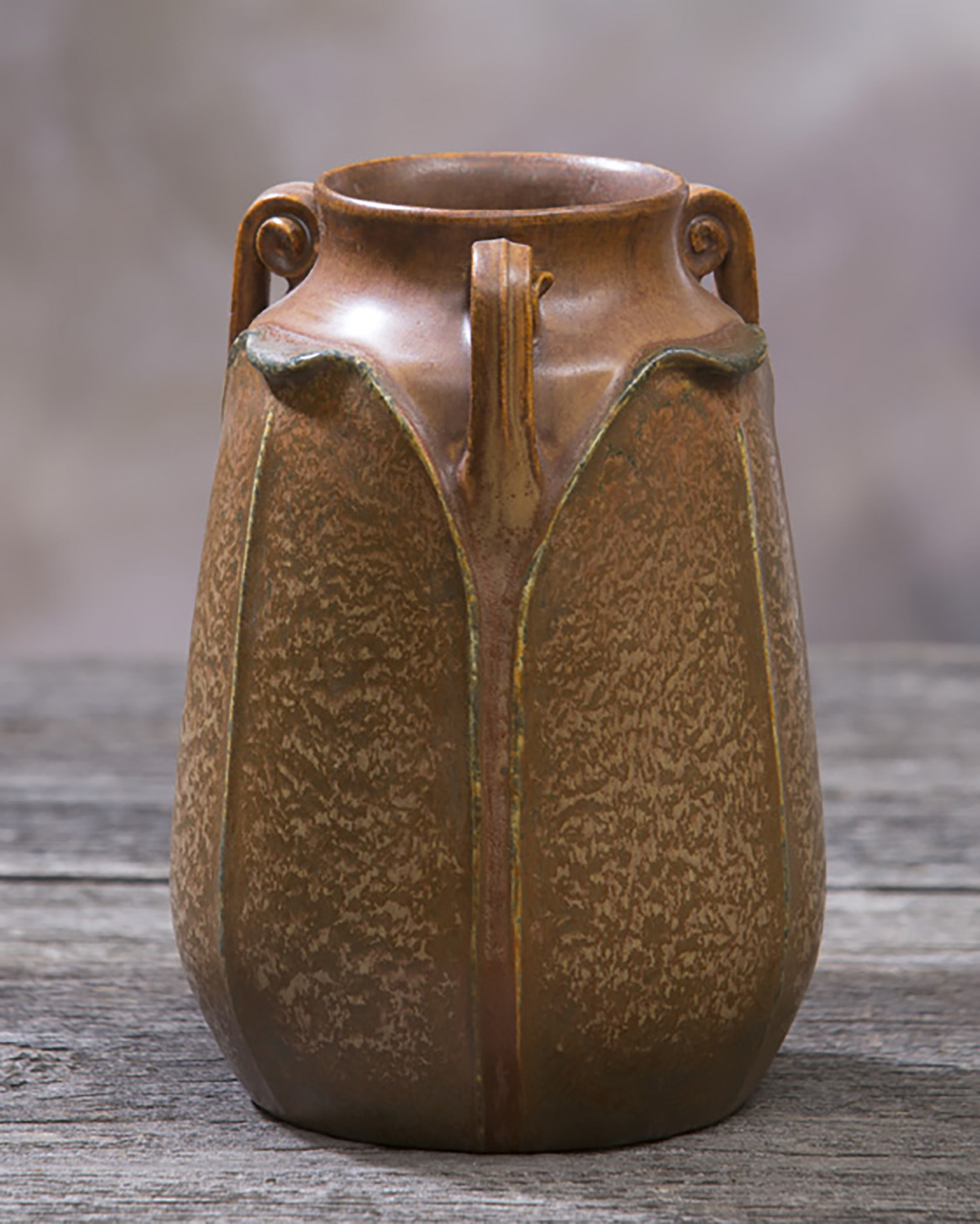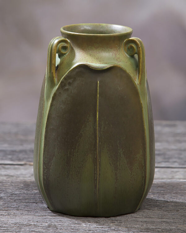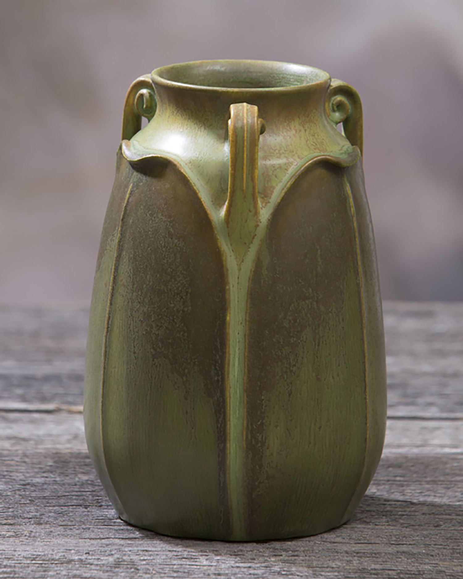 Our New Frond vase is a harmonious new friend to perfectly unify your collection. This vase celebrates spring’s earliest arrival—the fiddlehead—on a structured and traditional Arts and Crafts form. Inspired by the historic and iconic Grueby Faience Pottery’s fern-handled vases circa 1910, Ephraim artists revisited the fern and leaf theme in these small, rounded vases. This vase joins our traditional line of vases in four rich patinas.