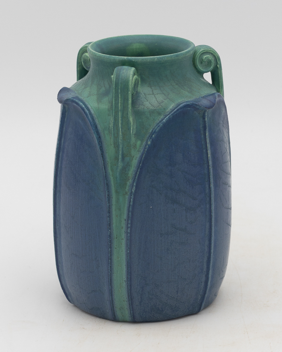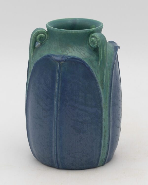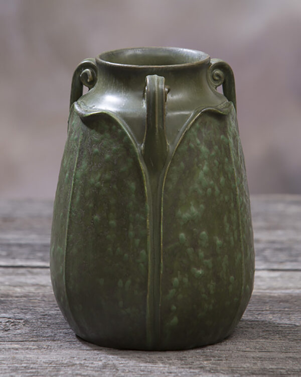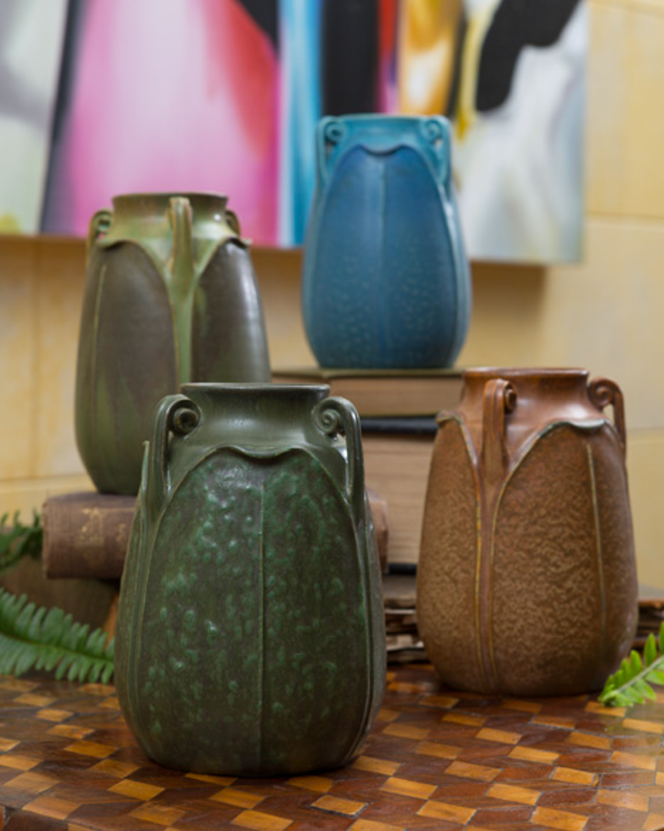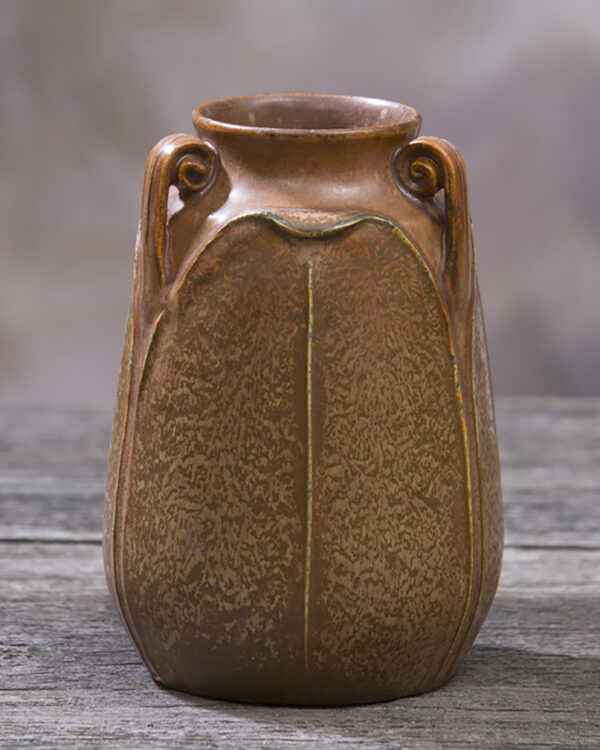 Our New Frond vase is a harmonious new friend to perfectly unify your collection. This vase celebrates spring’s earliest arrival—the fiddlehead—on a structured and traditional Arts and Crafts form. Inspired by the historic and iconic Grueby Faience Pottery’s fern-handled vases circa 1910, Ephraim artists revisited the fern and leaf theme in these small, rounded vases. This vase joins our traditional line of vases in four rich patinas.
