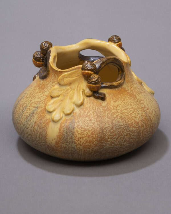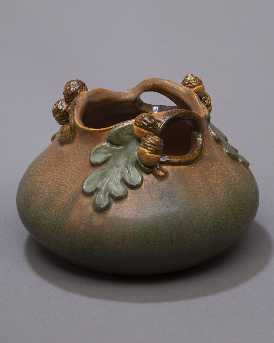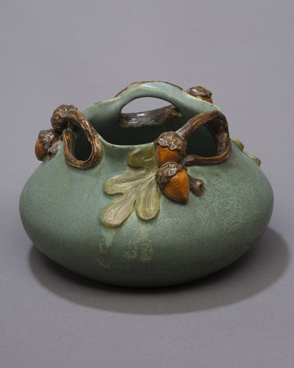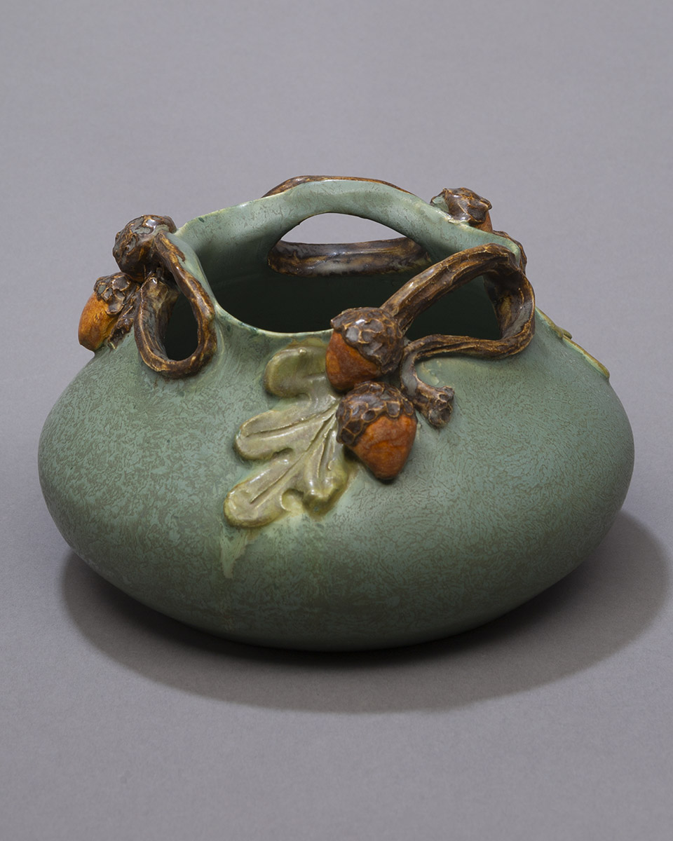We designed the Oak Branch Bowl in the style of our popular, retired Gingko Branch and Pine Branch Vases. These three designs feature arboreal motifs that wrap around the rim, forming branch handles to create a sculptural piece. The twining design combined with our flowing, blended glazes, means each of these pieces is truly an original work of art.