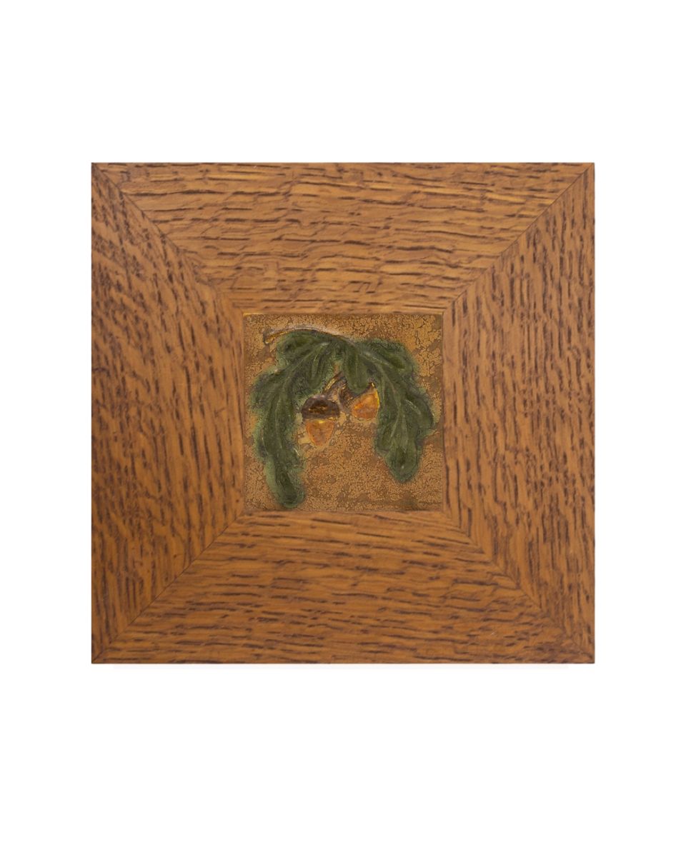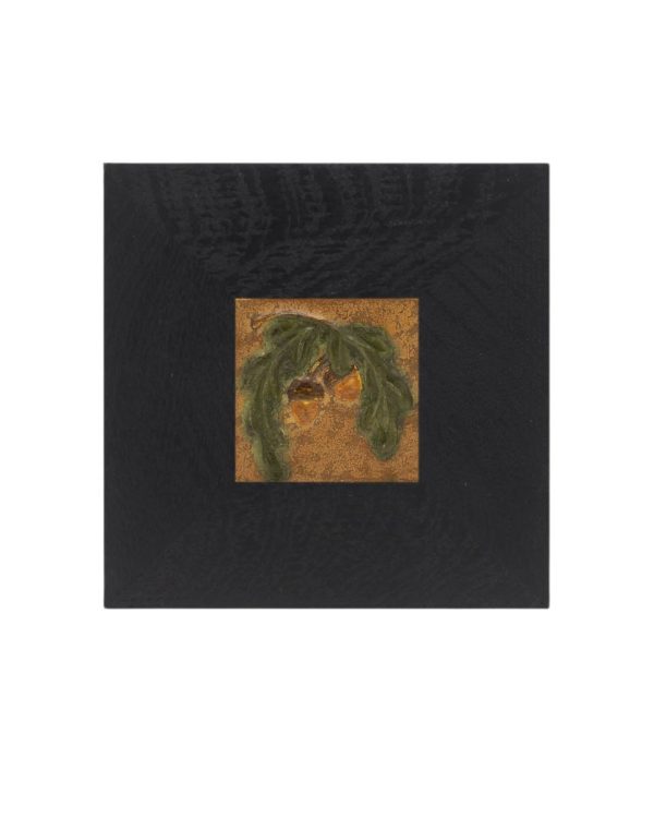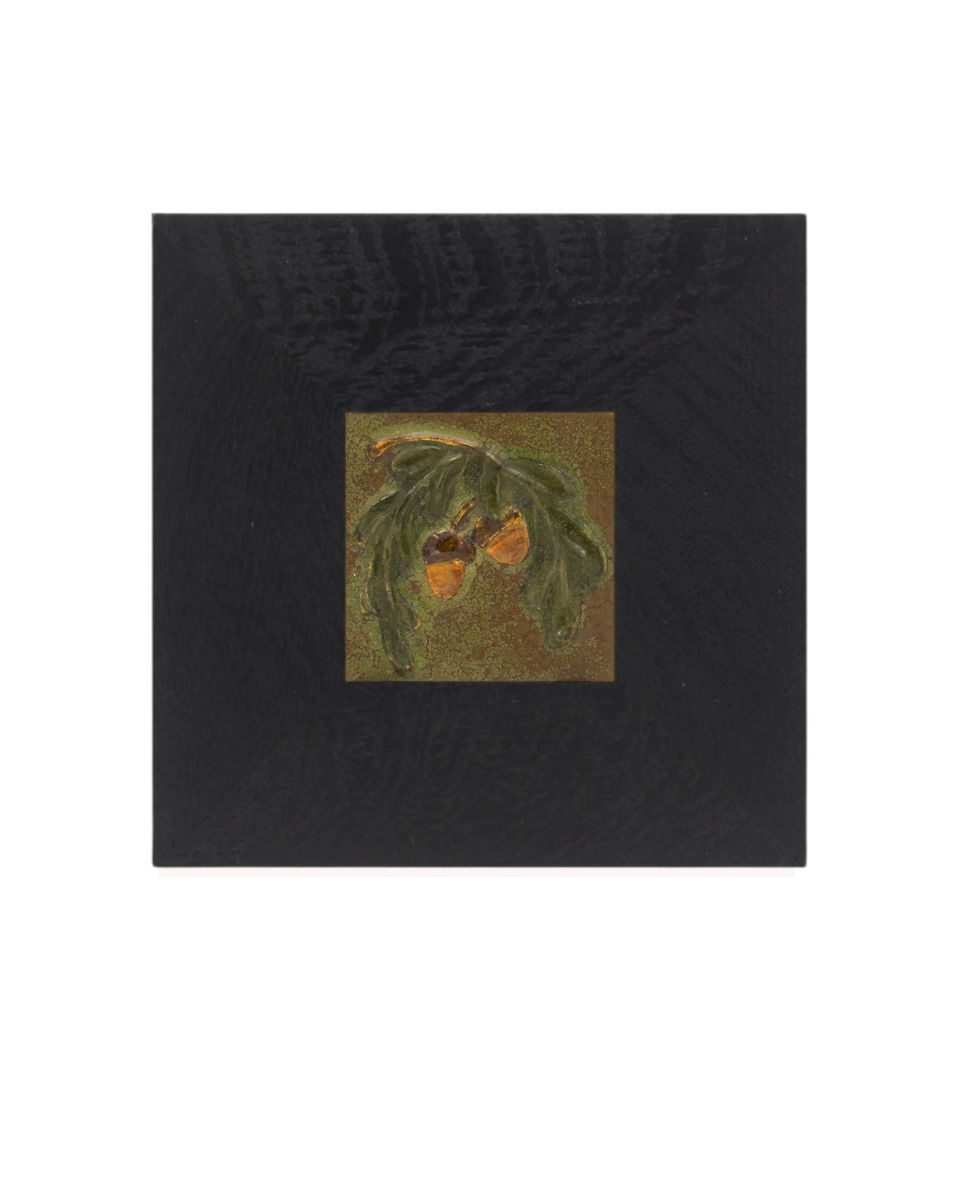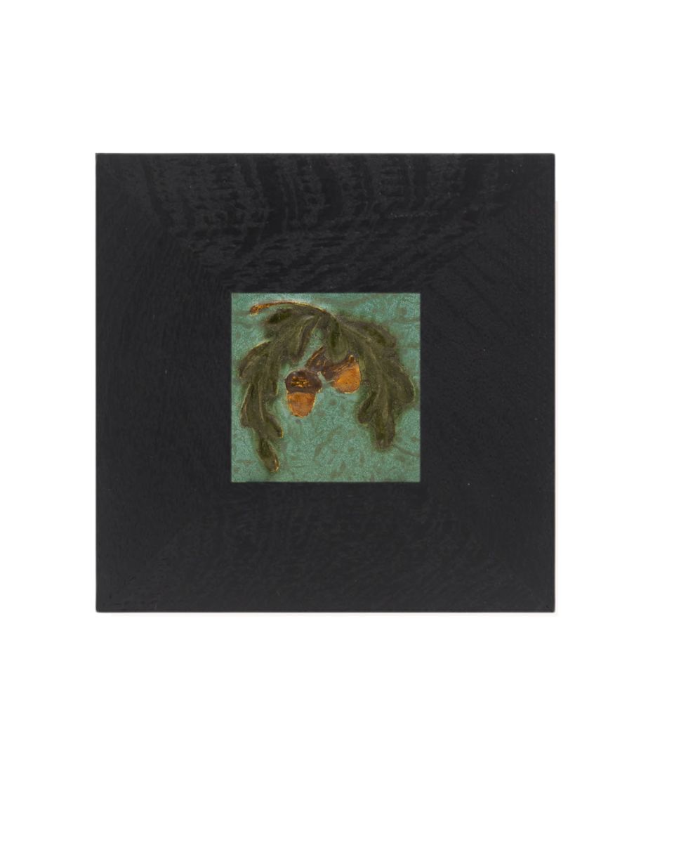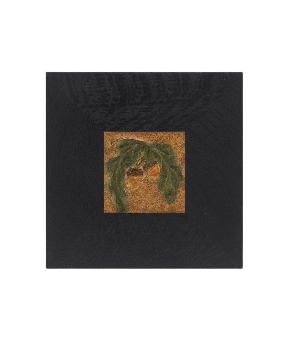 A bowing oak branch laden with acorns — a motif dear to our studio — returns in this petite tile. Collectors will recognize the subject from our recently retired Acorn and Oak Tile, here reimagined in a compact composition. Rich amber acorns hang from low-relief leaves, capturing the quiet abundance of autumn in miniature. This small tile is an accessible way to bring a piece of Ephraim home — and pairs beautifully with one of our handcrafted Dard Hunter frames.