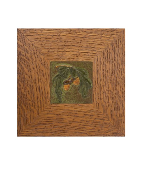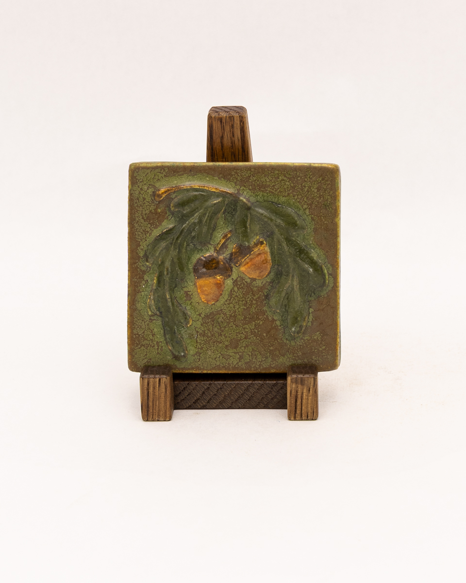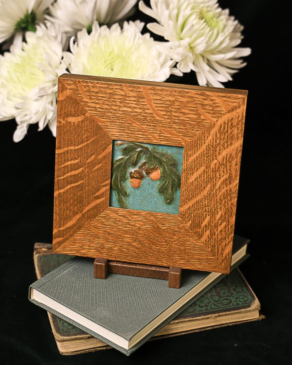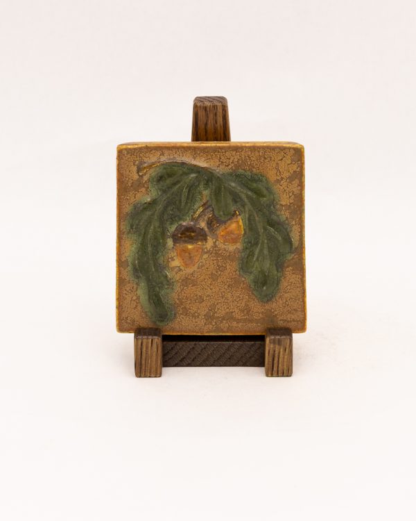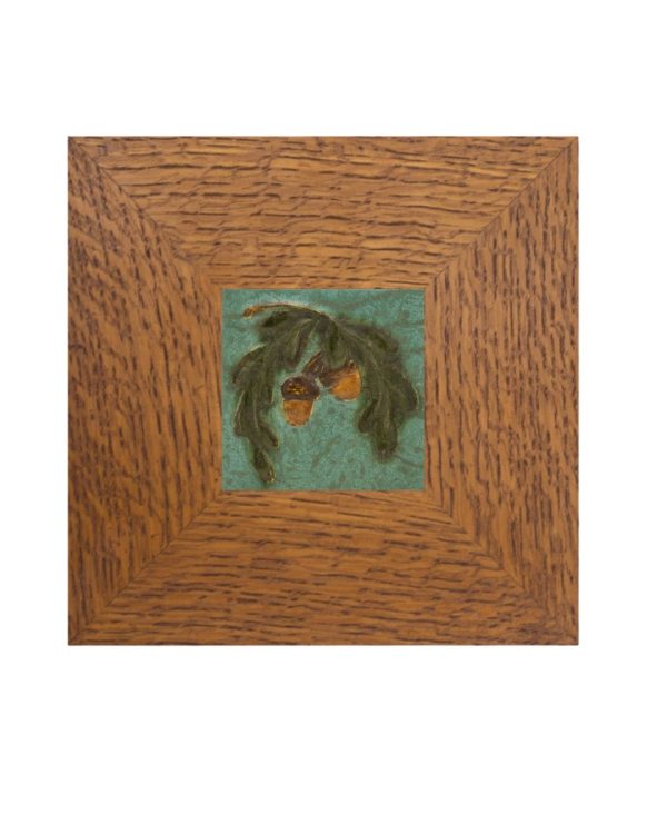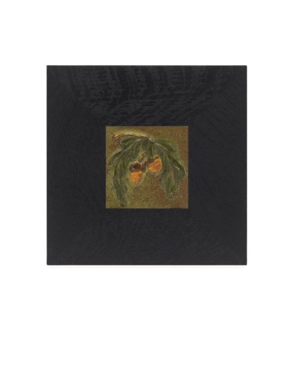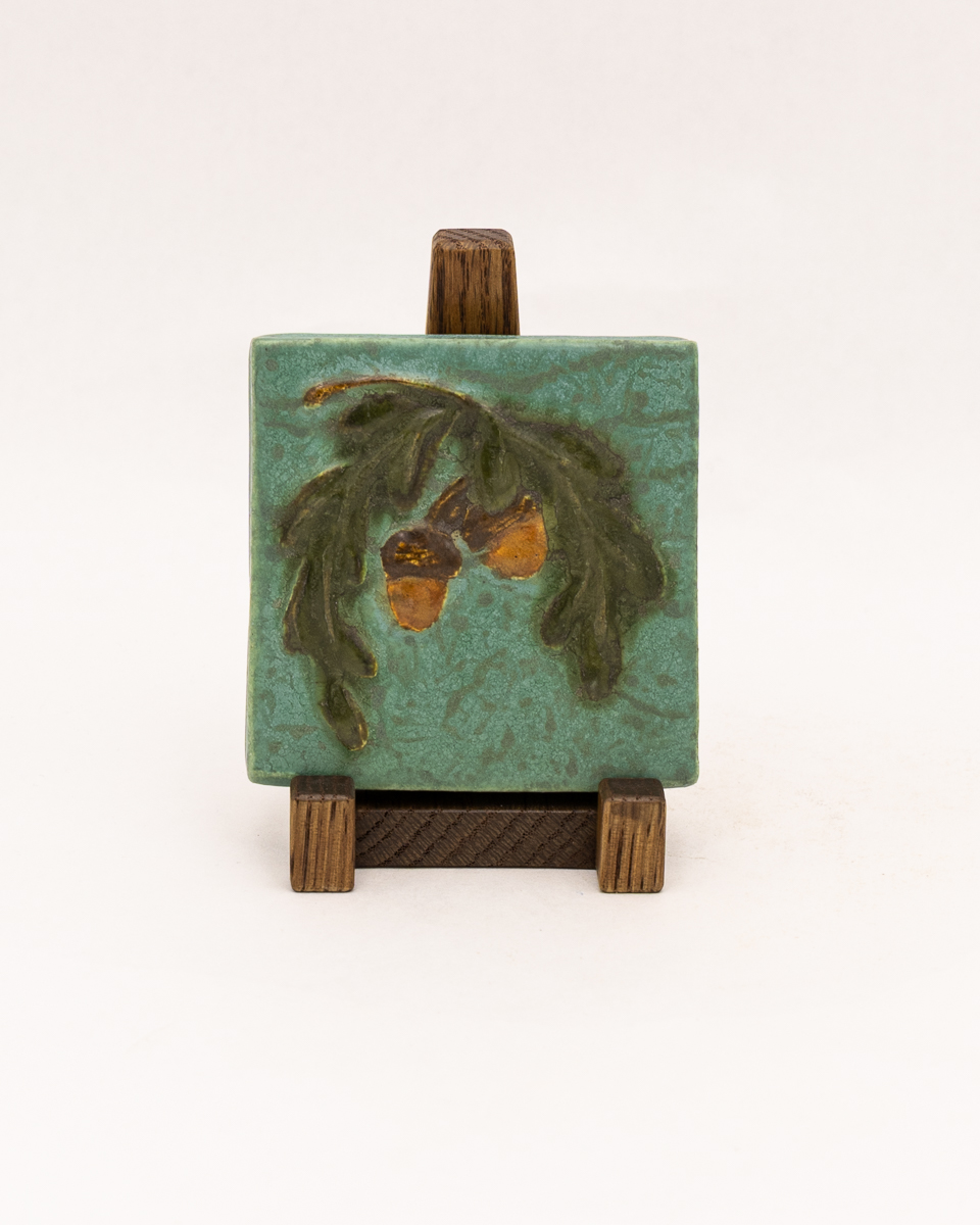 A bowing oak branch laden with acorns — a motif dear to our studio — returns in this petite tile. Collectors will recognize the subject from our recently retired Acorn and Oak Tile, here reimagined in a compact composition. Rich amber acorns hang from low-relief leaves, capturing the quiet abundance of autumn in miniature. This small tile is an accessible way to bring a piece of Ephraim home — and pairs beautifully with one of our handcrafted Dard Hunter frames.