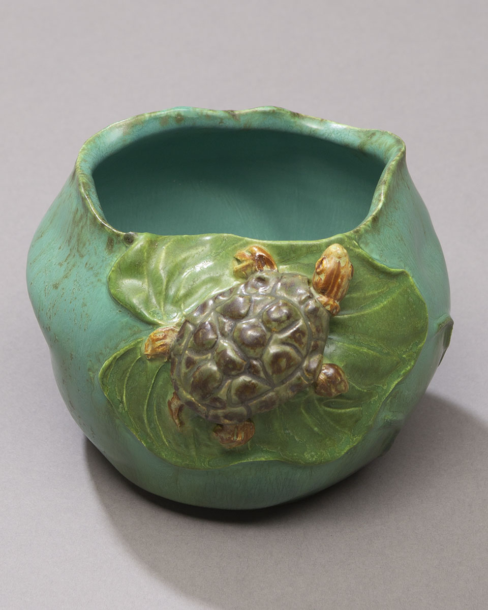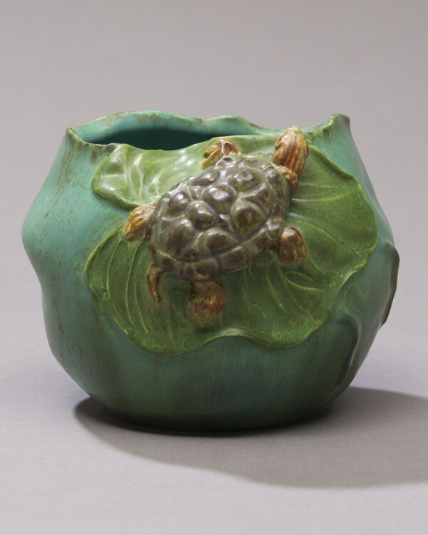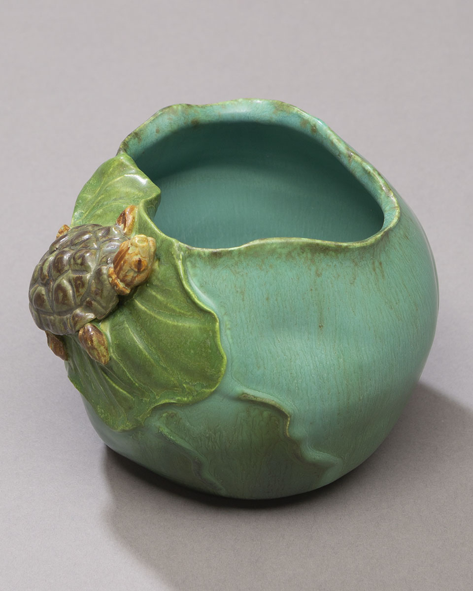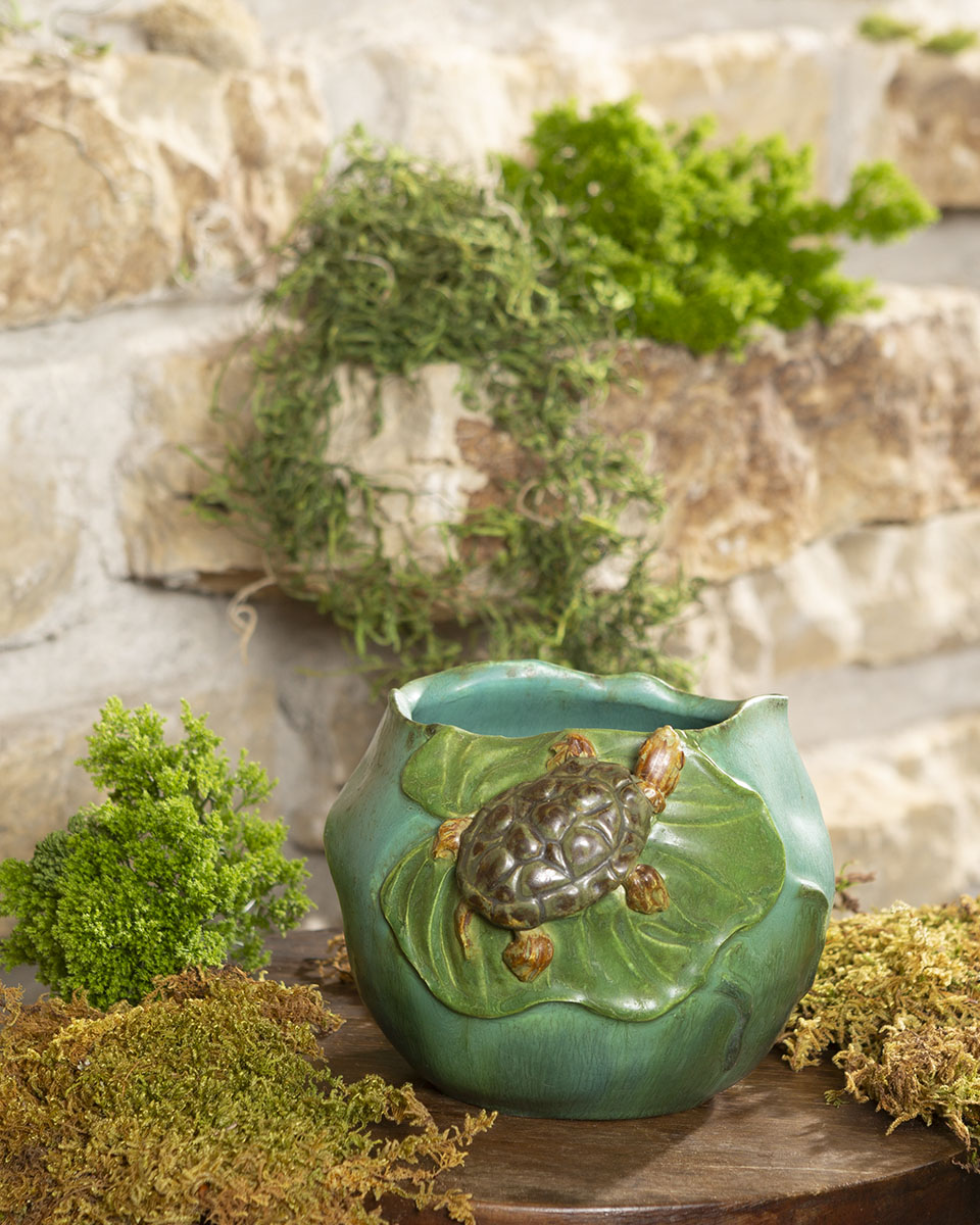 We wonder what this little turtle ponders as he lazes away an idyllic summer day. Our artists glazed many versions of this piece to develop the perfect color scheme that embodied the verisimilitude and pizazz we thought this little turtle deserved.