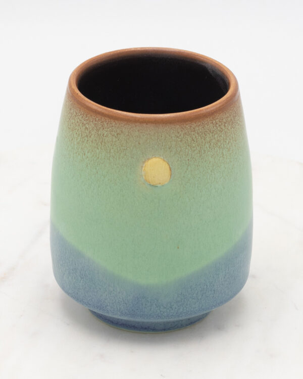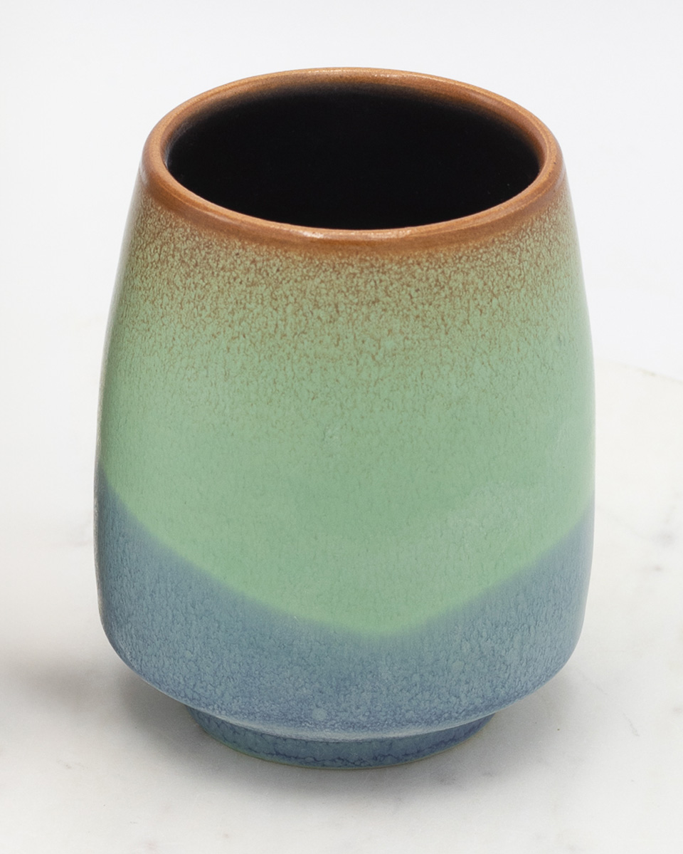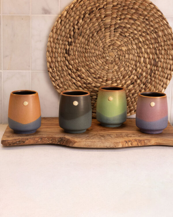 “Scape”—short for landscape—describes the abstract vista motif of this minimalist, wheel-thrown cup. Ponder the day’s possibilities with these perfect vessels for coffee, tea, or juice.