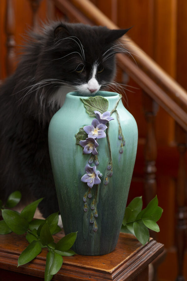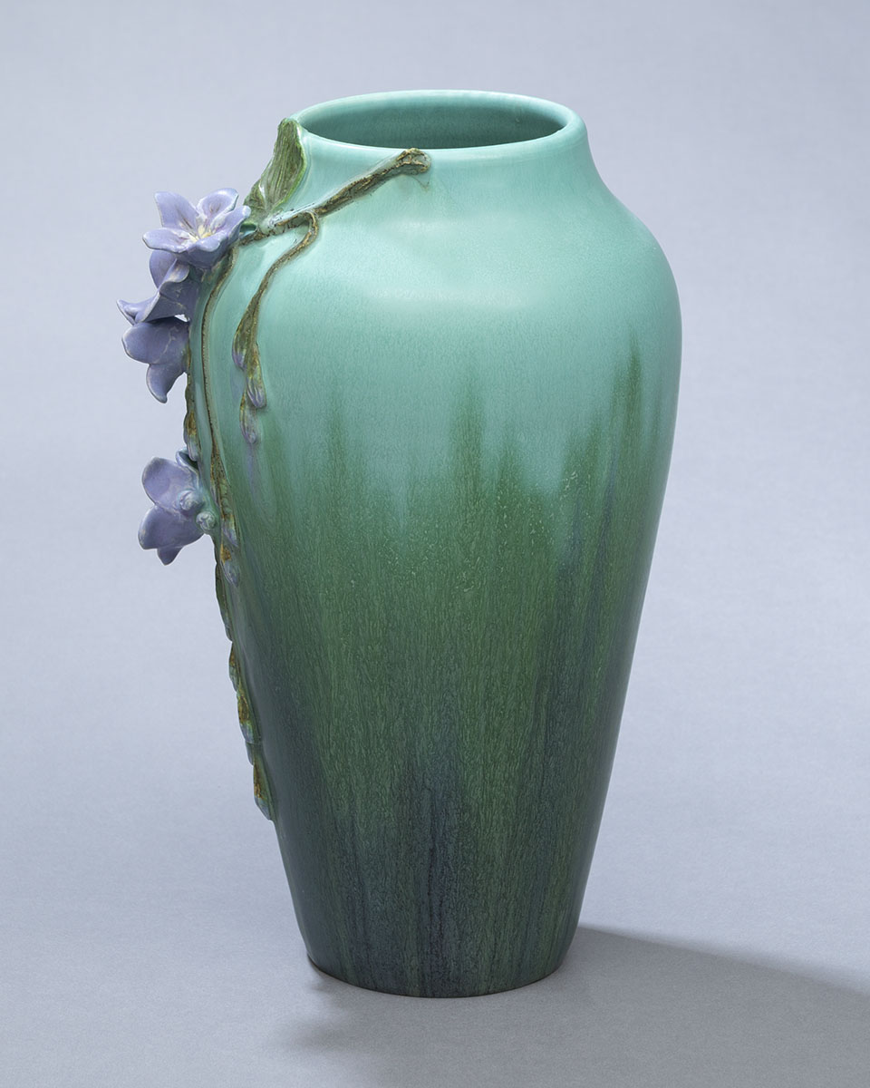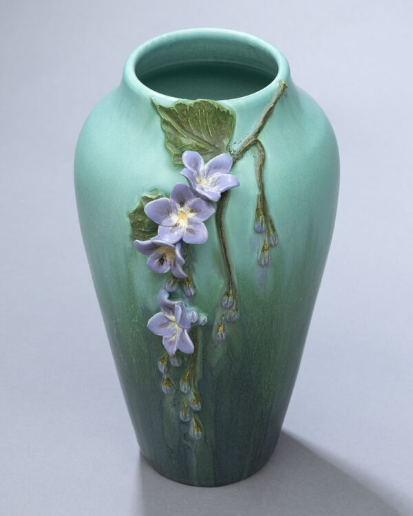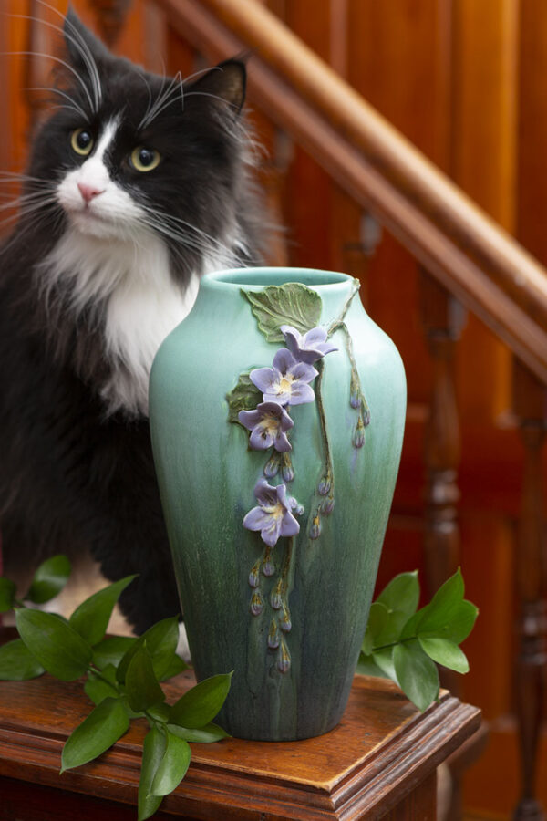 When several Ephraim artists travelled to Costa Rica, they were struck by the beautiful drape and bright blue color of these blossoms, inspiring this hand-sculpted vessel. The skyflower is widely cultivated by Central and South American gardeners for its floral clusters that bloom to attract butterflies and hummingbirds year round.
