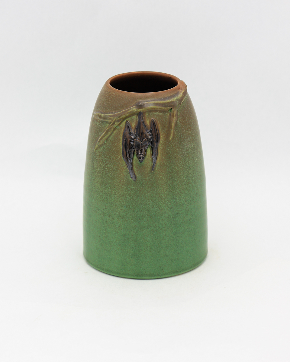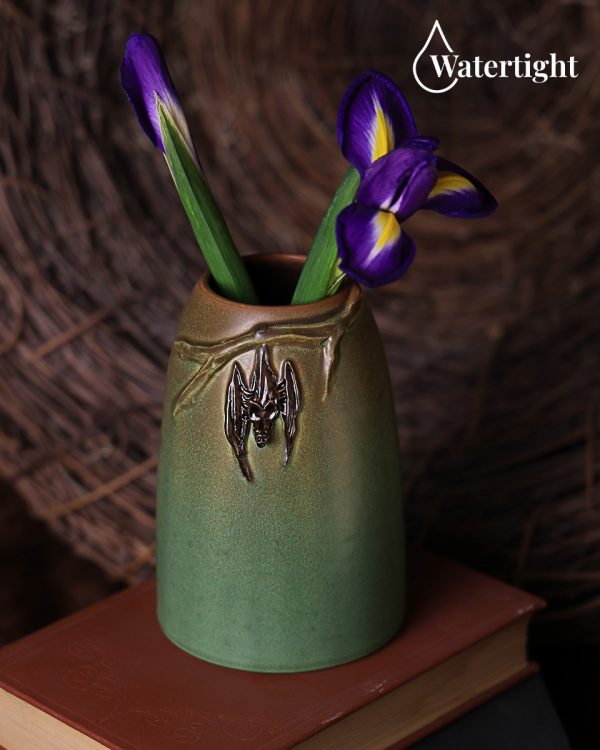 Bats have been a beloved motif at Ephraim since our earliest days, and this vase pays tribute to one of the studio’s first bat designs, the Hanging Bat Vase from the year 2000. Here, a single bat tucks itself into the shadow of a sculpted branch on a simple, tapered form — a quiet moment before nightfall. Crafted in watertight stoneware, the Umbra Vase is as functional as it is evocative, ready to hold your favorite flowers.